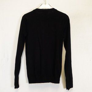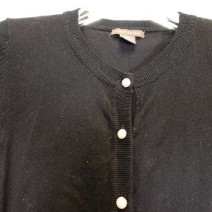 Suzy Shier Sweater Womens Small Black Knit Button Front Cardigan Pearl
