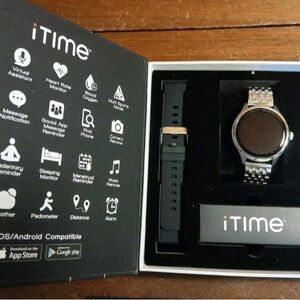 iTime Health/Fitness Smartwatch w/ Heart Rate Monitor 2x Straps & Charging Disc