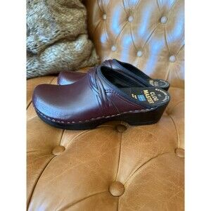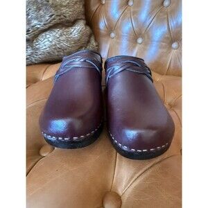 Sven Clog Master Women Eu 41 Burgandy Leather Woven Accent Shoes Wooden Slip On