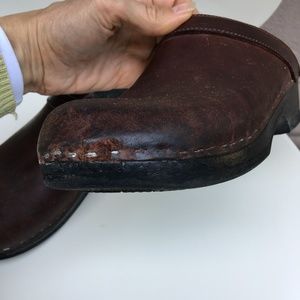 This is not a loose clog, this clog has a very firm fit. They are not stretched out or wide as many clogs tend to be or get over time. This particular style just locks your foot in once you put them on (making walking in them super safe and stable). Your foot stays in a 'cast" like fit.