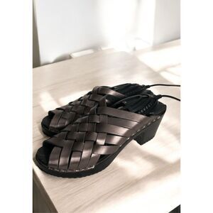 Sven Wooden Clogs Womens 9,5-10(40) Silver Black Woven Open Toe Swedish Sandals
