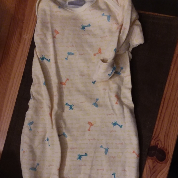 Creamy yellow swaddle with elastic bottom and attached mittens