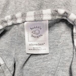 Swaddle Designs zzZipMe Sleep Sack Size S (0-6 Months) Gray Cotton 2-Way Zipper. Sleep sack is in good preowned condition, with minor wash wear, and very light yellowing at neckline. (Please see last photo.) 100% soft, combed cotton knit. 2-way zipper zips down from top and zips up from bottom. Size S (0-6 months) fits up to 28 inches. Item comes from smoke-free, cat-friendly home.