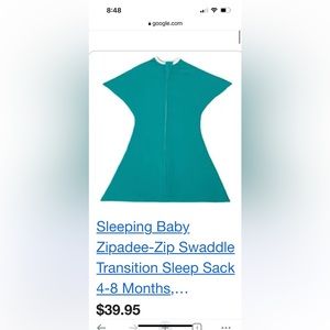 Sleeping baby Zipadee-zip, small, 4-8 months, teal, $45