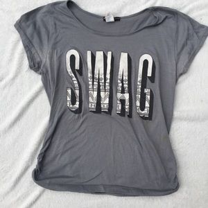 Swag graphic Tee. Slight staining as shown. Texture has changed a bit from being washed nothing major. Still very vintage and cute!