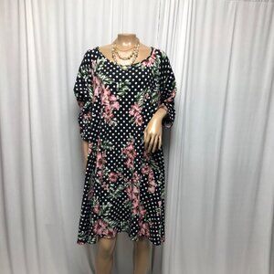 Swak Sealed with a Kiss Tunic Dress Womens Size 3X Black Pink Floral Soft Comfy