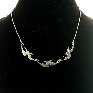 Swallow Birds In Flight Modernist Sterling Silver Necklace 17 In Studio Jewelry
