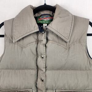 Swan Brand Puffer Vest Mens M Tan Zip Snap Big Collar Grey Duck Down VTG 70’s