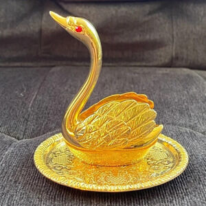 Swan Cygne Ring Holder Made of EP Zinc Alloy Silver Gold Tone Etched Jewelry Display or vanity decor piece