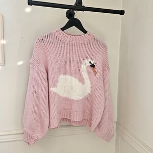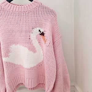 Beautiful Pink Swan sweater, soft Acrylic sweater fabric, so cozy!