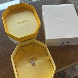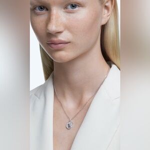 The treasured symbol of the Swarovski swan meets the iconic octagon emblem in this timeless pendant. Suspended on a delicate chain and surrounded by dazzling clear crystals, the centerpiece is a playful and contemporary take on the rich heritage of Swarovski. Style yours alone, or with the matching earrings and bracelet from the Swan family. This pendant is part of the Swan family, designed by Creative Director Giovanna Engelbert for Collection II. Read Less