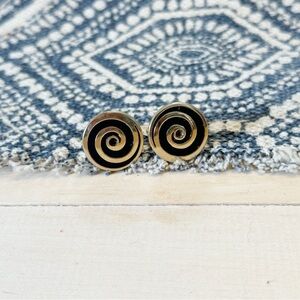 Swank Cufflinks Black Swirl Silver Art Deco Off Set Vintage Mens Formal Wear