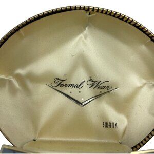 This vintage Swank formal wear set includes gold-tone cuff links and matching shirt studs, featuring black faceted inset for a refined and polished look. From gentlemen's estate sale.