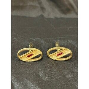 Swank Gold Tone Ruby Red Lucite Cufflinks Cuff Links