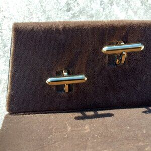 Swank Grand Prix TIGERS EYE Cufflinks Rectangular Gold Bars Original Vel…