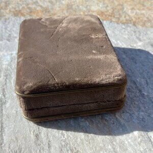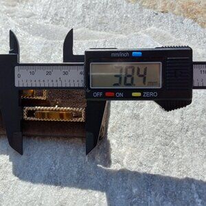 A nice and sartorial pair of Swank Grand Prix Tigers Eye Cufflinks in original velour snap closure box (and original marketing material). The featured design is a long slender bar of lovely polished Tigers Eye mounted and suspended on a gold beaded metal rectangular frame. The length of the links is 38.4mm, or 1.57". The links are in excellent condition. The snap velour box adds an air of luxury and has a gentle vintage feel.