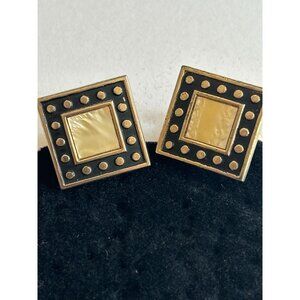 Swank Mens Mother Of Pearl Tie Bar Cuff Links Square Vintage Gold Tone Vintage
