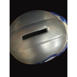 Vintage coin bank shaped like a Seattle Seahawks helmet, featuring a slot for coins. A collectible item for sports enthusiasts and fans.