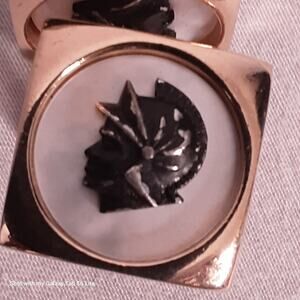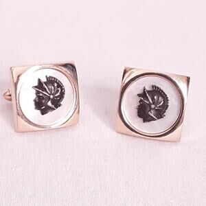 Swank Trojans Cuff Links 3D Head On Mother Of Pearl Base In Gold Tone Frame