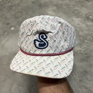 Swannies Golf Hat Cap One Size Snapback White Swan Logo Adjustable Pink Rope. Condition is Pre-owned - Good. Shipped with USPS Ground Advantage.