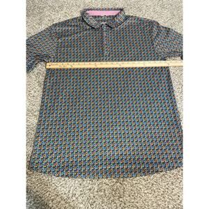 Swannies Men's Golf Polo Shirt Men’s XL Violet All Over Print Performance. Excellent used condition. See photos for overall condition and measurements. No flaws or imperfections. Emblem on the back neck of the shirt is peeling off.
