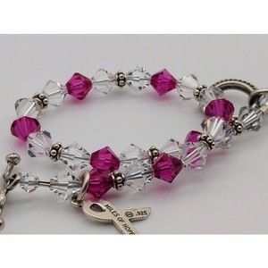 Swarovski 925 Silver Breast Cancer Bracelet