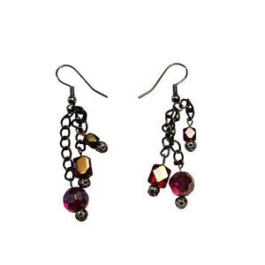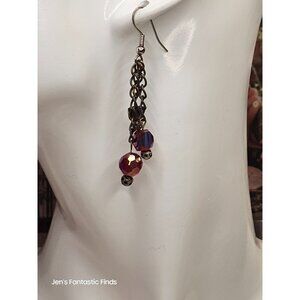 Exquisite Swarovski AB Red & Silver Beaded Dangle Earrings by Jen's Fantastic Finds. These 2" earrings feature a hook back style, perfect for a touch of elegance and sparkle.