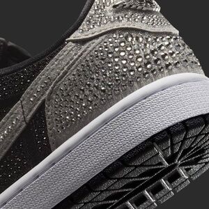 The Women’s Air Jordan 1 Low with Swarovski crystals will launch globally beginning May 17 in a chic ‘shadow’ colourway (black, grey and white). Crafted with a low cut and high profile entirely decked out in premium-cut crystals, the sneaker is a spin on the classic, blending sport, style and self-expression.