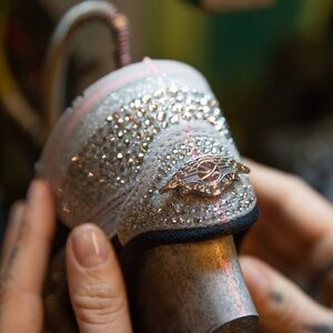 While the new crystalised Air Jordan 1 may look like a gallery-worthy piece of art (even the lush, precisely detailed “caviar fabric” texture is saturated with crystals), the silhouette is bold and built to flex. The combination of clever design and crystal craftsmanship means you can take the pristine cut crystals with you anywhere, one sparkling step at a time.