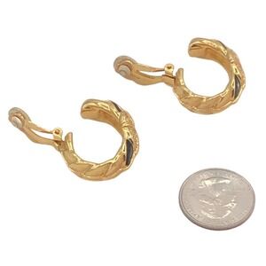 Swarovski Brand Gold Plated Black Enamel Clear Crystal Hoop Clip-On Earrings.