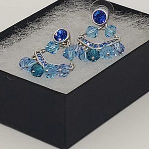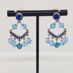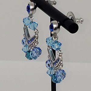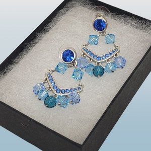 Swarovski Crystal Blue Chandelier Dangle Drop Silver Post Earrings