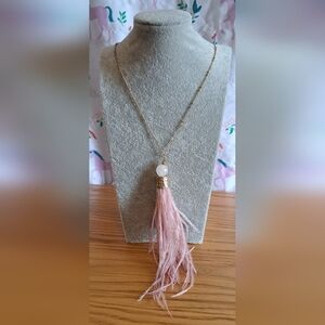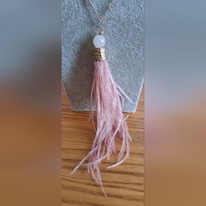 Swarovski Crystal & Blush Ostrich Feather Boho Gold Tone Necklace Jewelery