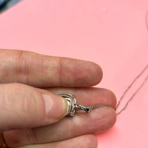 Pendant stamped 925 SAI cushion cut blue stone w clear crystal details on bell of pendant. Swarovski Crystal. New with tags.