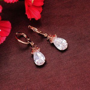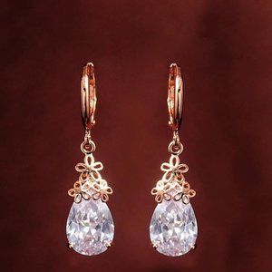 Swarovski Crystal Drop Earrings in rose gold, with le fleur embellishment. brand new. gift boxed.