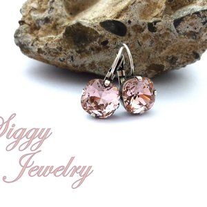 Swarovski vintage rose cushion cut drop earrings. These are genuine Swarovski 10mm cushion cut crystals in a pinkish-brown warm blush color and they are gorgeous!!