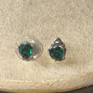 Swarovski Crystal Heart Emerald Green Earrings! These stunning stud earrings feature heart-shaped emerald green gemstones that radiate a vibrant hue. Set in a classic white metal, possibly white gold or platinum, they are perfect for both everyday wear and formal occasions. The clear and bright gemstones ensure a high-quality look that will enhance any outfit.