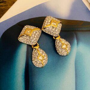 Swarovski Crystal Encrusted Gold Tone Dangle Statement Earrings
