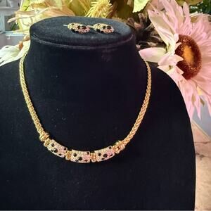 Swarovski Crystal Gold Tone Necklace & Earrings Set