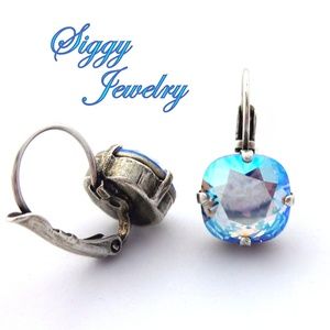 Swarovski Crystal Light Sapphire Shimmer Earrings in pronged settings. The earrings will be custom made for you in the finish of your choice. Shown in antique silver.