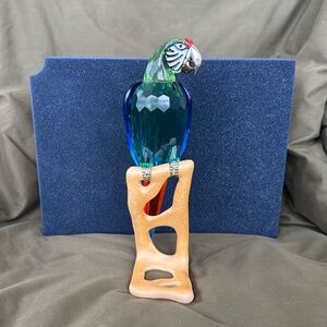 Swarovski Crystal Macaw on Perch, Birds of Paradise 685824, beautiful Chrome Green, approximately 9” tall. Mint Condition with box
