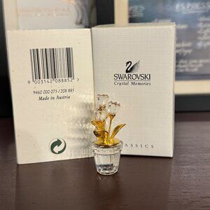 Swarovski Crystal Memories Classics Flower Pot Figurine with Gold Leaves NIB