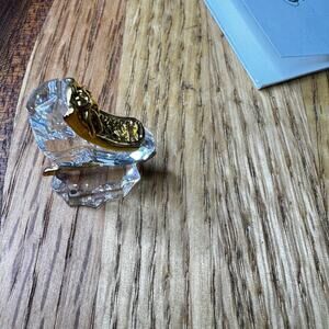 Swarovski Crystal Memories Ice Skate Gold Lace Blade on Ice Block Collectible