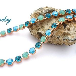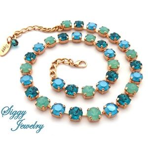 Swarovski crystal Opal Jubilee necklace crafted with genuine Swarovski 8mm crystals in a captivating mix of ocean blues. The necklace will be custom made for you in your favorite finish.