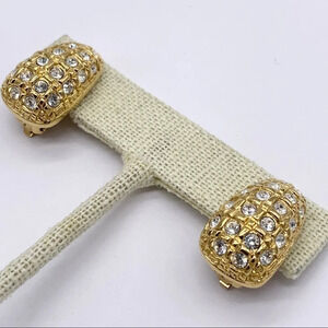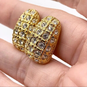 Swarovski Crystal Pave Gold Earrings. Measures approximately .75”.