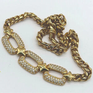 Swarovski Crystal Pave Link Gold Necklace. Measures approximately 17”.