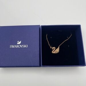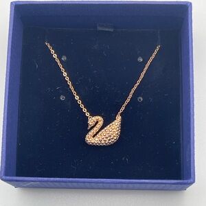 Got this as a gift! Never worn. This Swarovski Rose Gold Swan Necklace features a swan motif encrusted with clear crystals and a rose gold-tone plated chain. 🦢