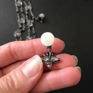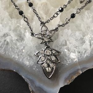 Beautiful Swarovski set! Black and silver tone floral necklace and clip on dangle earrings with padded backs. Black and clear crystals. Makes a great gift! Perfect for a gothic/steampunk wedding!