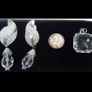 Title: Swarovski Crystal Silver Tone Chunky Dangle Earrings & Pendant 41.1g