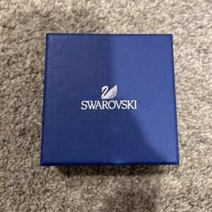 From Swarovski, this chic and elegantly designed necklace and stud earring set is sure to dazzle. This rhodium-plated set features the 'dancing crystal' design concept with star shaped motifs in pavé encircling a floating sparkling stone. The set includes a pair of earrings and a pendant on a chain. This glittering set will brighten any look in an instant.