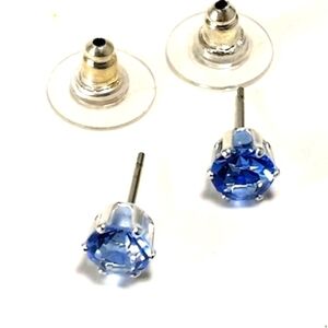 Swarovski Crystal - Sterling Silver Overlay - 2 CTW Blue Stud Earrings - 0.20"